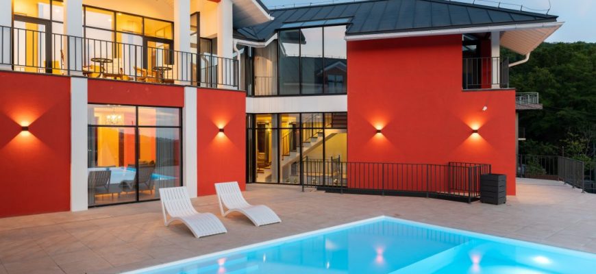 Собственный водоём с подогревом решает вопрос с погодой. Купаться можно даже в пасмурный день. Для малышей установите надувной бассейн-лягушатник прямо рядом, а подростки могут устроить веселые заплывы на время. Важно: