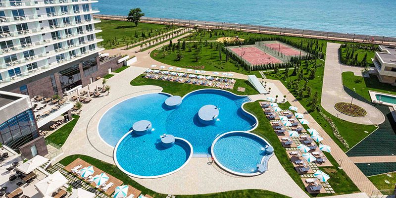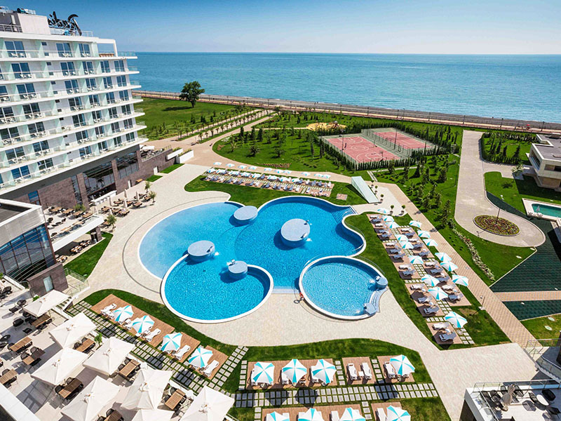 Если нужен гарантированный шезлонг у кромки воды, смотрите на курортный комплекс «Имеретинский». Здесь несколько гостиниц, включая Radisson Blu Paradise Resort & Spa и «Богатырь»