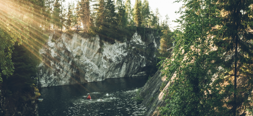 Если хочется густых лесов и глубоких озёр, сворачивай в сторону Карелии. Посёлок Кузнечное – отправная точка. Отсюда пешком по лесной тропе за час выйдешь к Малому Янисъярви. Вода там прозрачная и холодная даже в июле, а на гранитных скалах по берегам растёт вереск. Место не раскручено, людей мало.