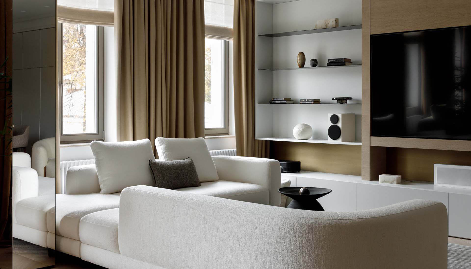 Дизайнер Валерия Стенникова нашли способ объединить в интерьере выразительные классические элементы, хрусталь и винтажную мебель, создав яркое, живое и