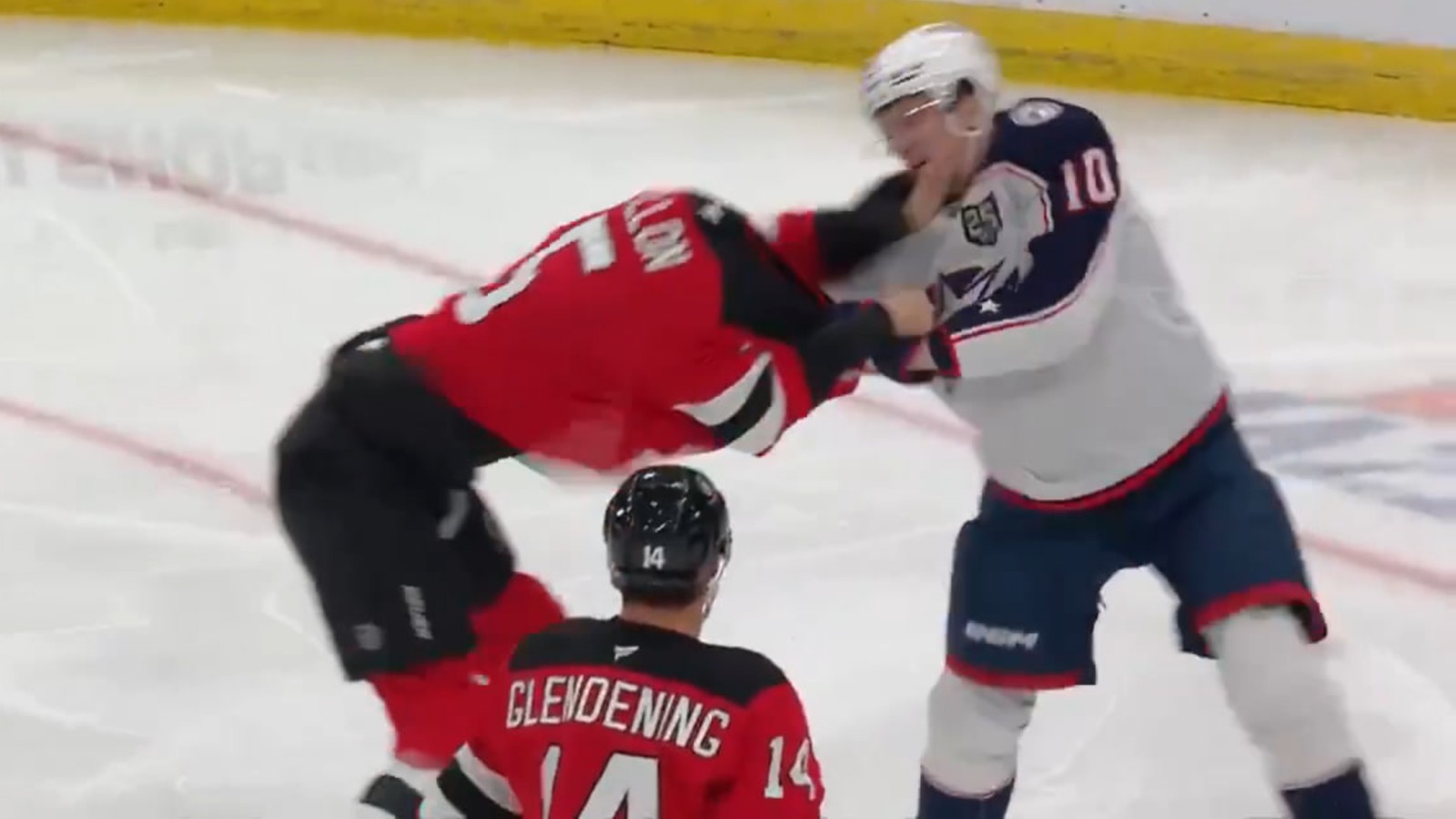 Нападающий «Коламбус Блю Джекетс» Дмитрий Воронков дважды сражался в матче регулярного чемпионата НХЛ против «Нью-Джерси Девилз», который завершился победой
