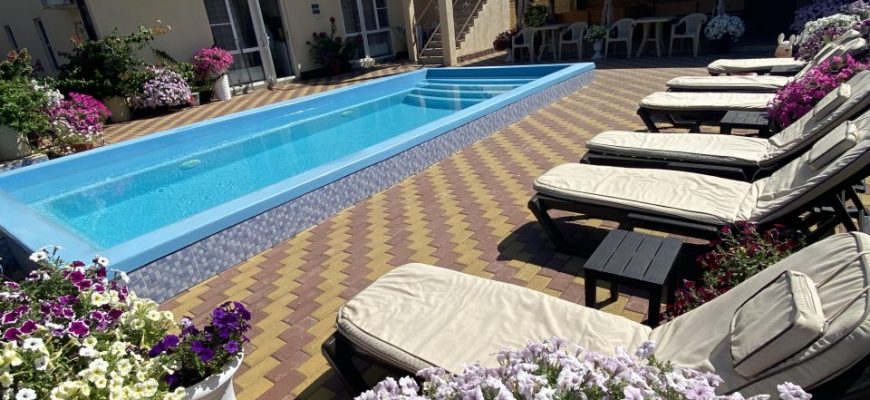 Изучите территорию. Нужна огороженная, зелёная зона, где малыш не выбежит на проезжую часть. Бассейн должен быть с отдельным мелким детским участком и тёплой водой.