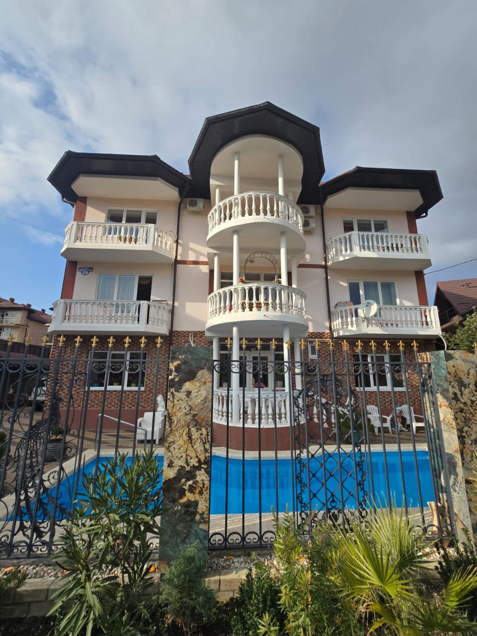 Уточните, что входит в «благоустроенную территорию». Наличие мангальной зоны с вечерней подсветкой, парковки (бесплатной!), высокого забора и хотя бы небольшой детской площадки с качелями повышает комфорт в разы. Открытый бассейн должен быть на фото, а не только в описании.