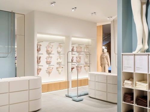 Проект начался с идеи создать в Москве шоурум для бренда нижнего белья, способного составить конкуренцию Intimissimi: лаконичного, дешевого, гибкого и легко масштабируемого. Однако строгий минимализм не соответствовал позиционированию компании; интерьеру не хватало мягкости и легкости. Тогда команда Синица Буро пересмотрел концепцию и взял за основу круглые формы, пастельные тона и естественные фактуры.