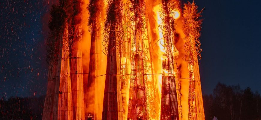 Главной темой Масленицы 2026 стала беззаветная любовь и желание поделиться своим внутренним огнем с другими. В Никола-Ленивце 21 февраля разгорится «Пылающее сердце» — масштабный арт-объект, созданный художником и основателем парка Николаем Полисским. Концепция вдохновлена героем Максима Горького Данко, который вырывает из груди пылающее сердце, чтобы осветить путь людям.