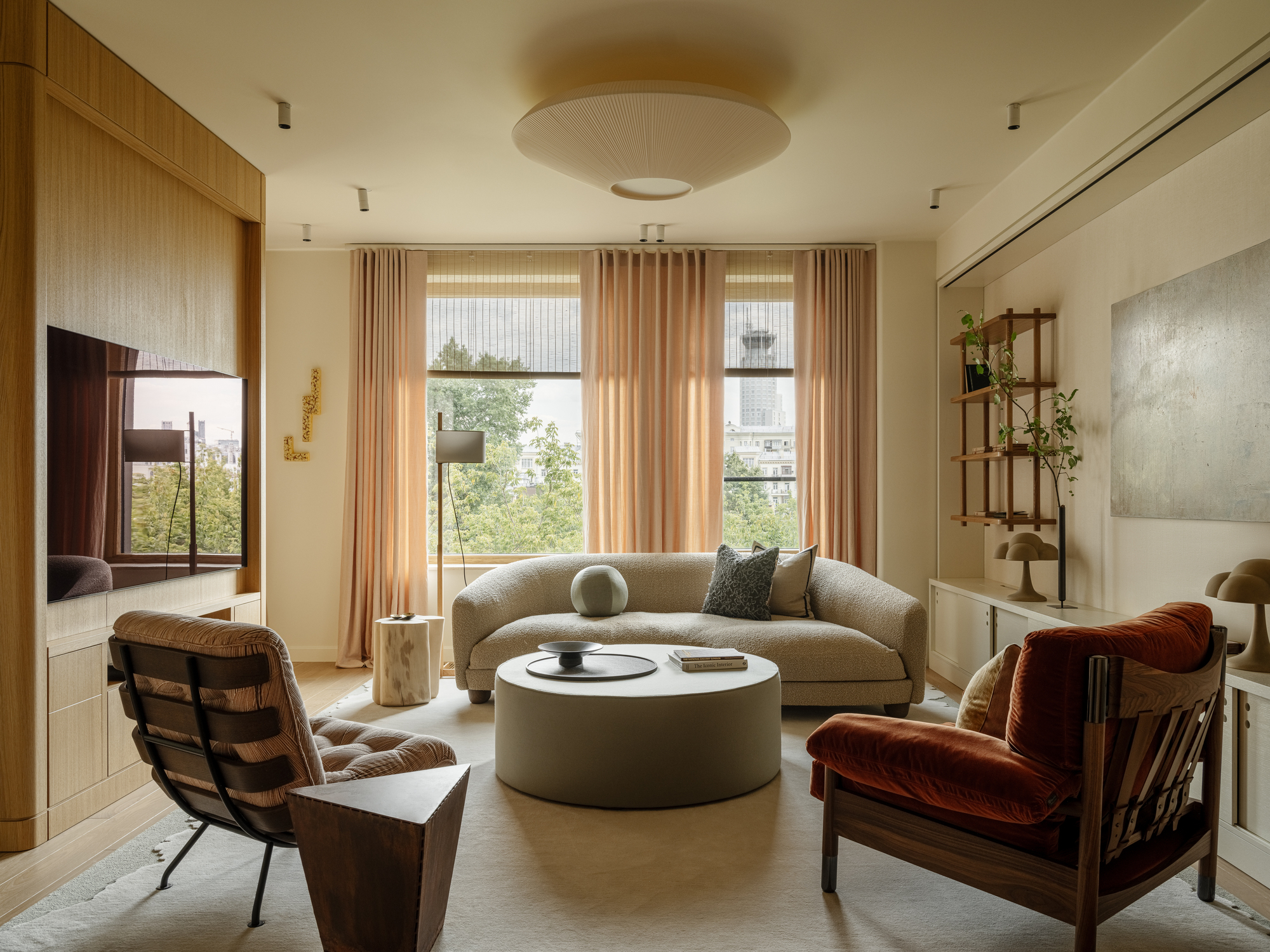 «Мы старались избегать« мебели »как таковой: шкафы были встроены в стены, а прием был изготовлен из обработанного пластика — это похоже на огромную легкомысленную установку. В то же время все места очень удобны для клиентов, зеркала для стилистов были разработаны в сотрудничестве с постоянными дизайнерами освещения».