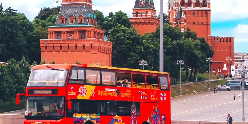 Садитесь в транспорт с панорамными окнами прямо на Манежной. Это отправная точка. Вы проедете мимо Исторического музея из темно-красного кирпича и сразу
