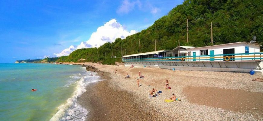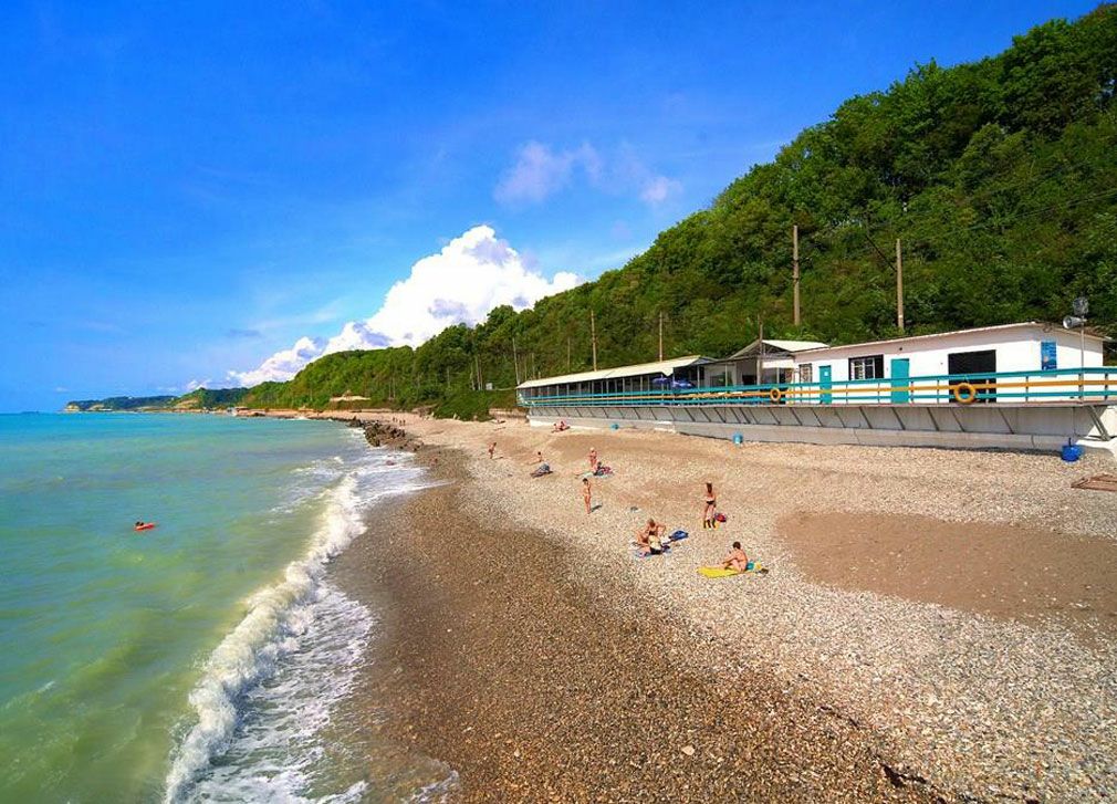Если искать тихую бухту с галечными пляжами в стороне от крупных курортов, обратите внимание на это место в устье реки Куапсе. Здесь нет многоэтажных отелей – только частный сектор, гостевые дома и несколько баз отдыха. Средняя цена за ночь в сезон (июль-август) начинается от 2500 рублей с человека. Бронируйте жилье за месяц-два, особенно если нужна квартира с кухней или дом у самой воды.