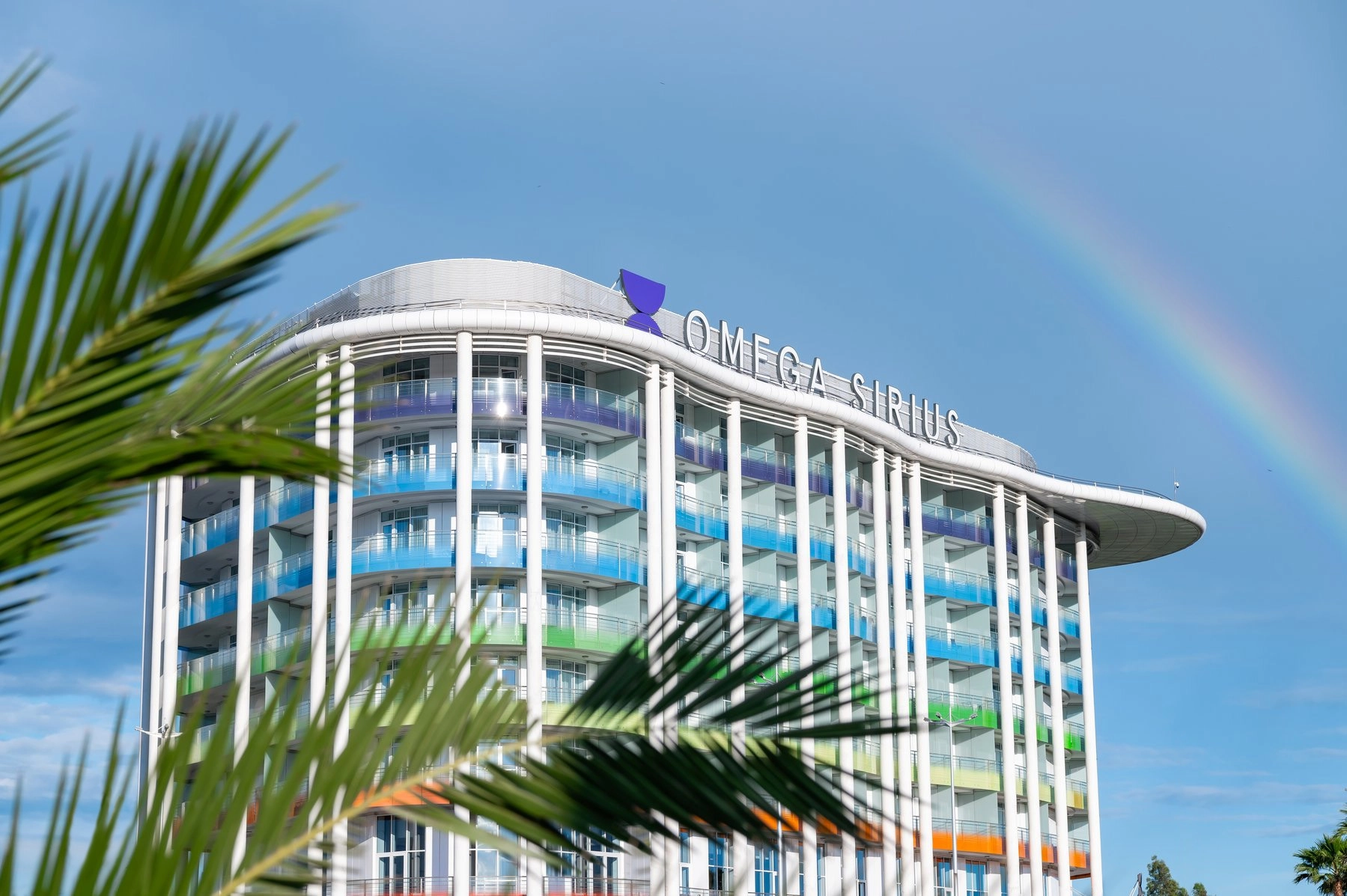 Выбирайте угловые люксы на верхних этажах – с их балконов открывается полная картина: и чаша «Фишта», и линия моря до горизонта.