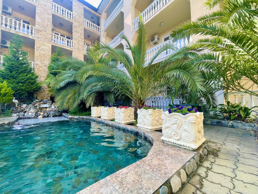 Обратите внимание на локацию. Заведения в западной части поселка, например, пансионат «Волна», имеют более широкую береговую полосу. Море здесь спокойнее, а народу меньше, чем в центральной зоне. Проверьте трансфер: некоторые места предлагают бесплатный подвоз к своему участку побережья на электрокарах, если идти пешком далеко.