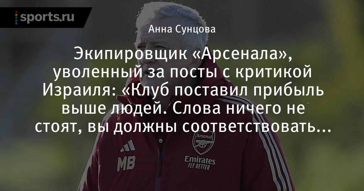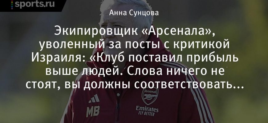 Бывший экипировщик «Арсенала» Марк Бонник, который был уволен в декабре 2024 года после публикации в социальных сетях с критикой Израиля и поддержки Палестины, заявил, что клуб не соответствует заявленным ценностям. Об этом он рассказал в интервью Грубая политика.
