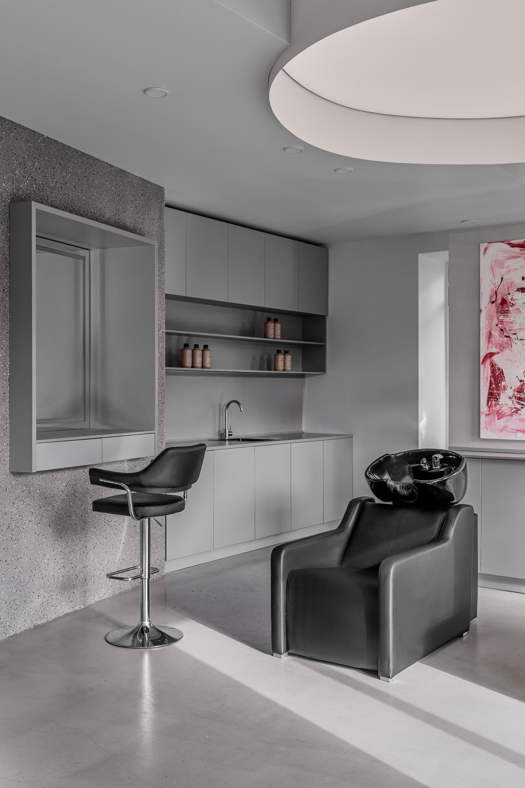 Дизайнеры Владимир Ен и Ольга Хаматгалиева изВандал письменный стол спроектировала салон красоты в Краснодаре с необычным названием «Брахмастра». Согласно индуистской мифологии, Брахмастра – самое мощное и точное оружие в мире, которое всегда находит свою цель и от нее невозможно отвратиться. «Название отражает мощную силу красоты», — говорят авторы проекта. «Мы не ставили своей целью продемонстрировать эту силу напрямую, но сделали это, не будучи слишком грубыми. Скорее, это сила, которая очаровывает и очаровывает».