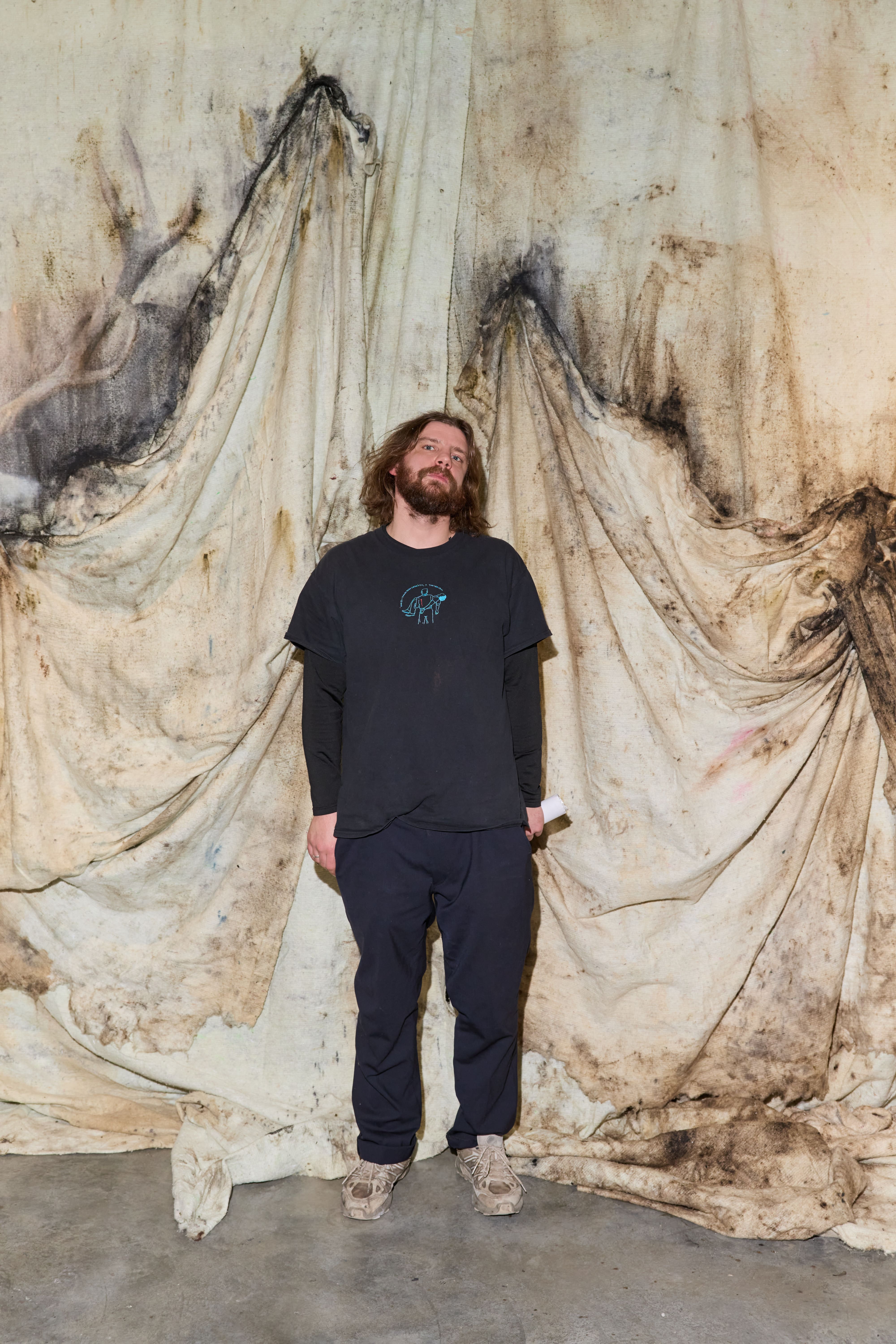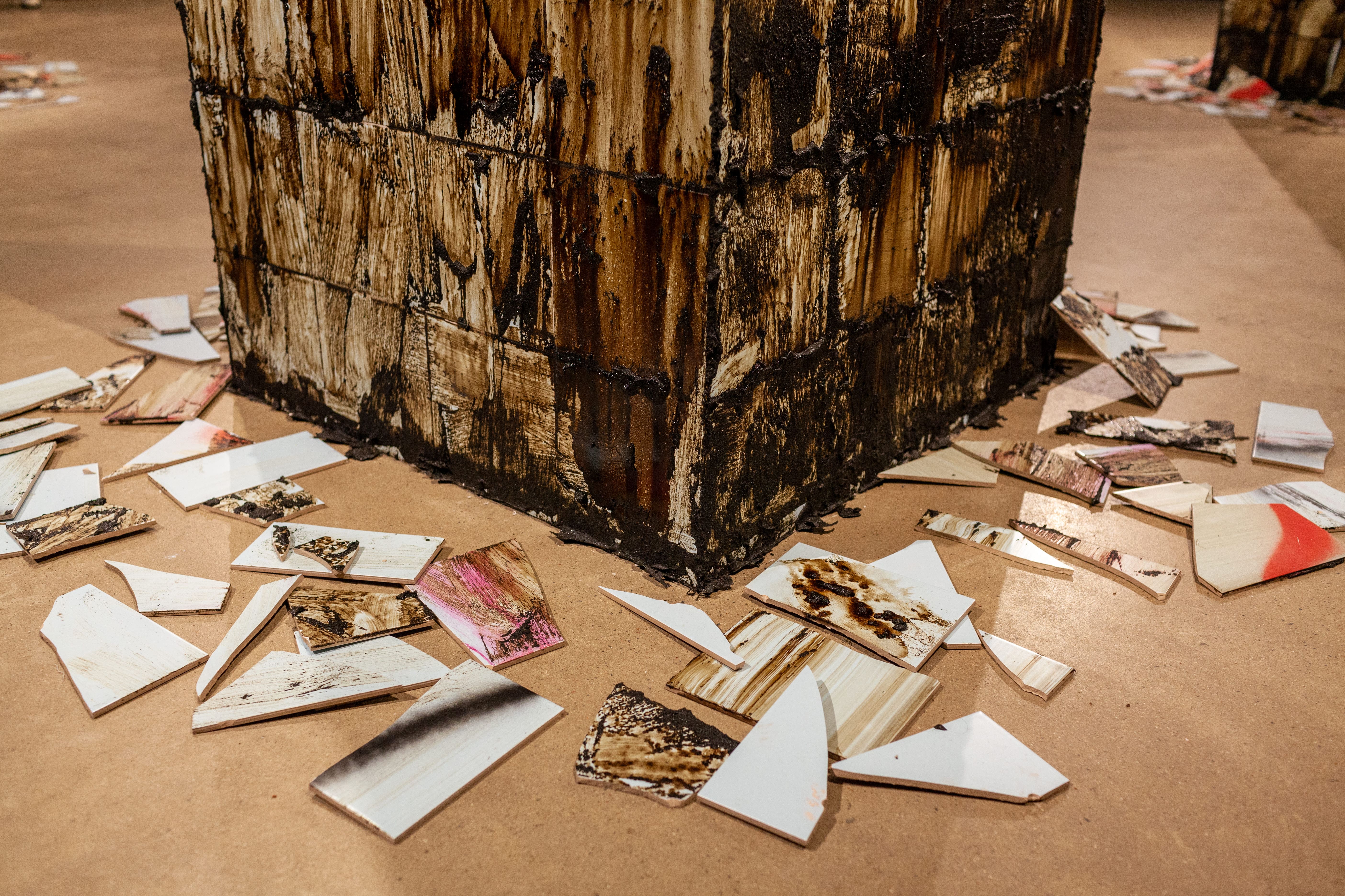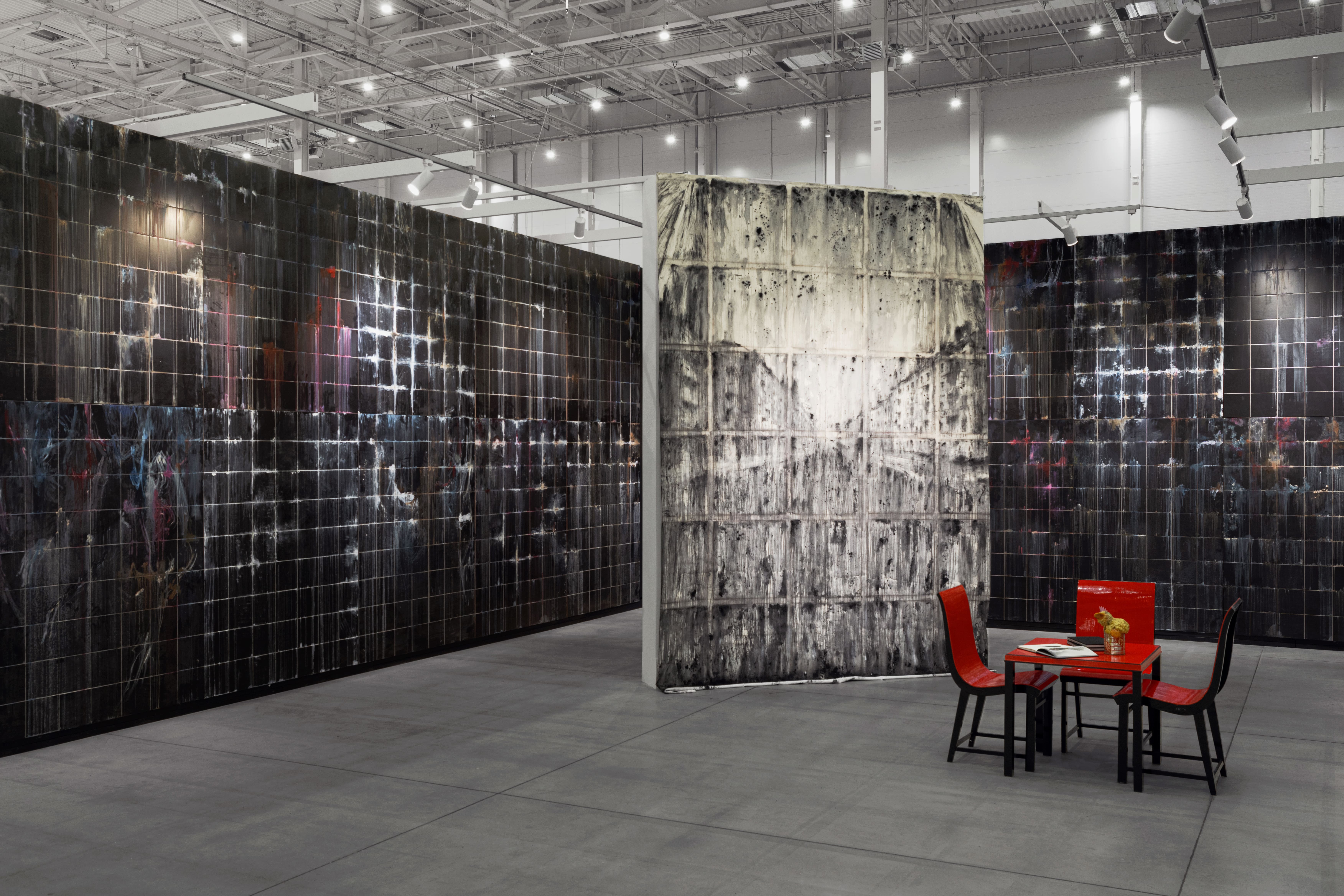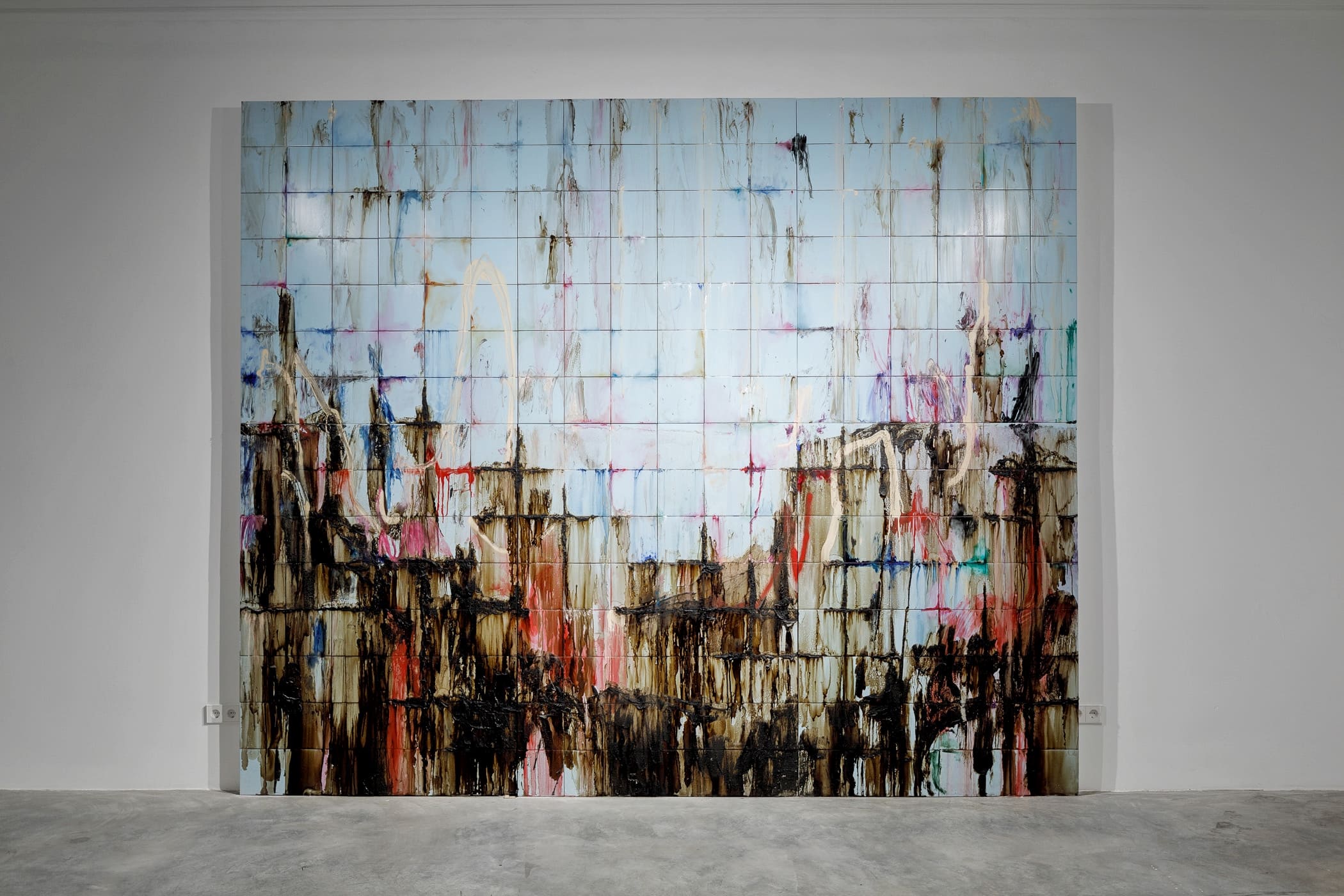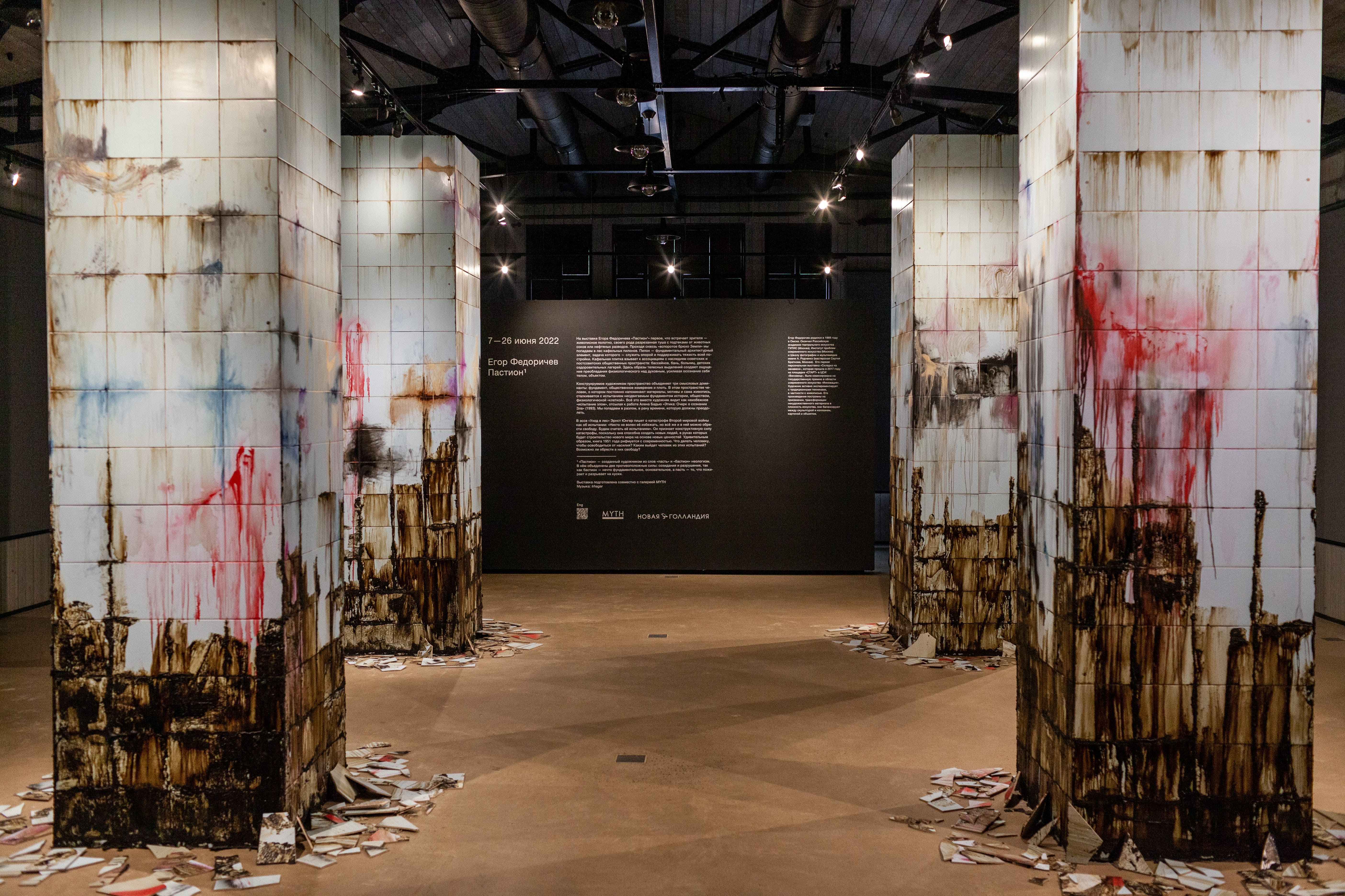 Плитка впервые появилась в 2021 году на выставке «Тихое сияние», это был мой первый проект в галерее МИФ. Тогда мне показалось, что этот материал очень значим: он как будто рассказывает всю сложную историю ХХ века. В 2022 году из плитки был выполнен проект «Пастион», а в 2025 году я снова обратился к этому материалу, так как чувствую, что его потенциал далеко не исчерпан, и у меня есть идеи, как с ним справиться.