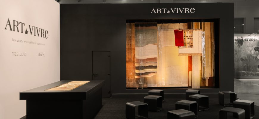 На международной выставке ARTDOM бренд ковров Art de Vivre представил выставку, созданную в сотрудничестве с арт-студией FRESH.GLASS. Инсталляция на стенде была построена как камерное мероприятие, где гость занимает позицию зрителя. Концепция состояла из фрагментов истории Art de Vivre, практических экспериментов, поиска новых фактур и вдохновения цветовыми сочетаниями Франции – страны, где зародилась философия «искусства жизни». Стекло FRESH.GLASS также рождается из странствий: команда находит места, где природа ведет диалог с духом территории, и посредством своего творческого видения использует опыт, полученный для изучения природы стекла.
