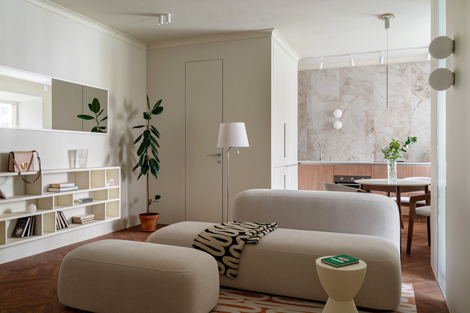 Яркий проект в клубном доме Monodom Line на Васильевском острове не имеет ничего общего с типичными квартирами в Санкт-Петербурге. «Интерьер создан в духе эклектики с элементами середины века. Мы сделали акцент на необычном цветовом решении и сочетании геометрических принтов в отделке и отделке», — рассказывают Юлия Денскевич и Юлия Ермакова из студии YucubeDesign, которым было поручено работать над пространством.