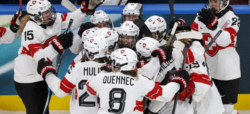6 февраля в первом матче группового этапа сборная Швейцарии разгромила сборную Чехии со счетом 4:3 по буллитам. После этой встречи швейцарские хоккеисты не участвовали в церемонии открытия Олимпийских игр.